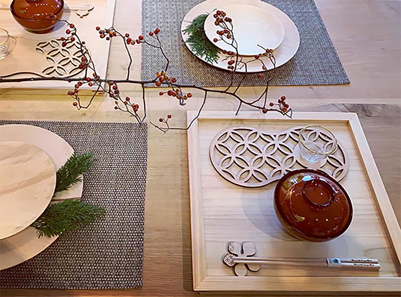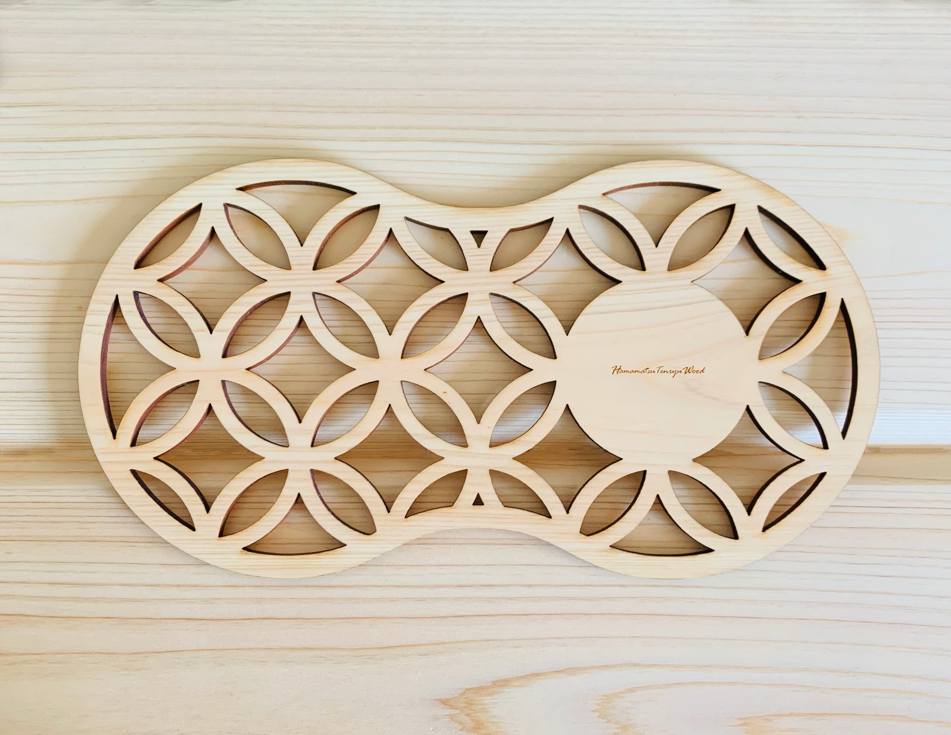 ●天竜美林と呼ばれる山で育った、香りが高く美しい表情の木目を併せ持つ高級木材「浜松天竜ひのき」を使用。レーザー加工を施し存在感のある製品に仕上げました。